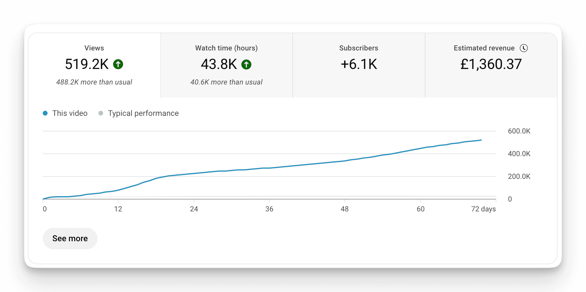 On YouTube, idea is king. So we search through thousands of proven frameworks for content on the platform to find the best videos to grow your channel.